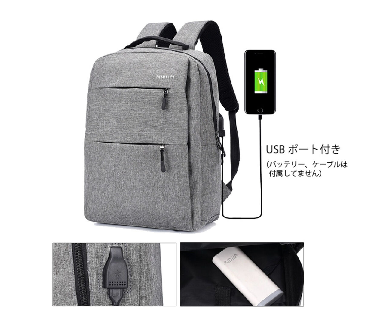 リュックには外部USB充電