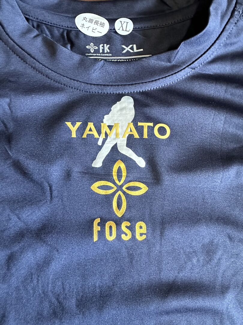 学生野球での使用にも対応するFoseKiftアンダーシャツ。ユニホームから見えない位置にゴールドでプリントしてます。