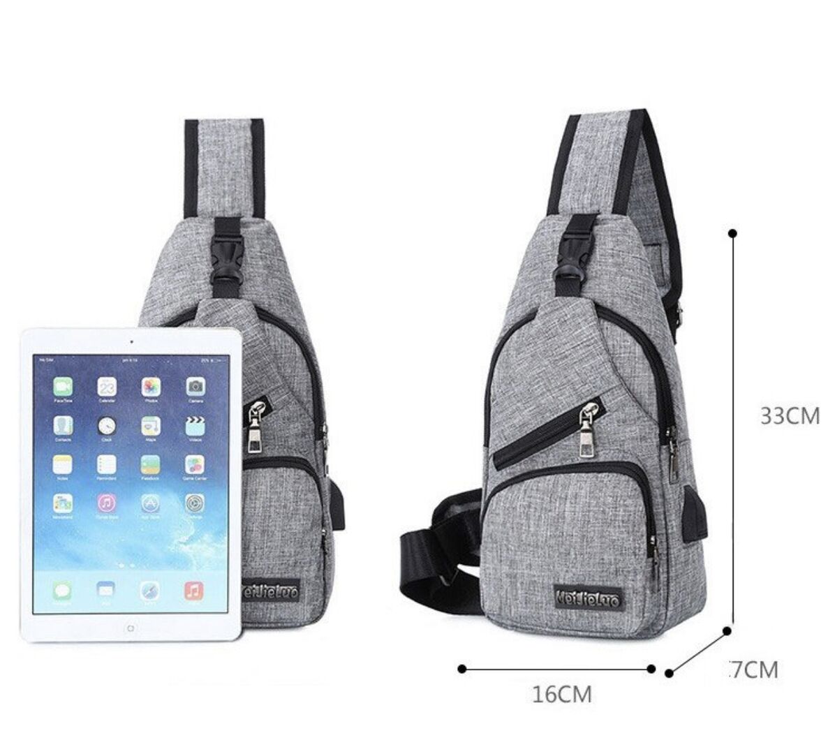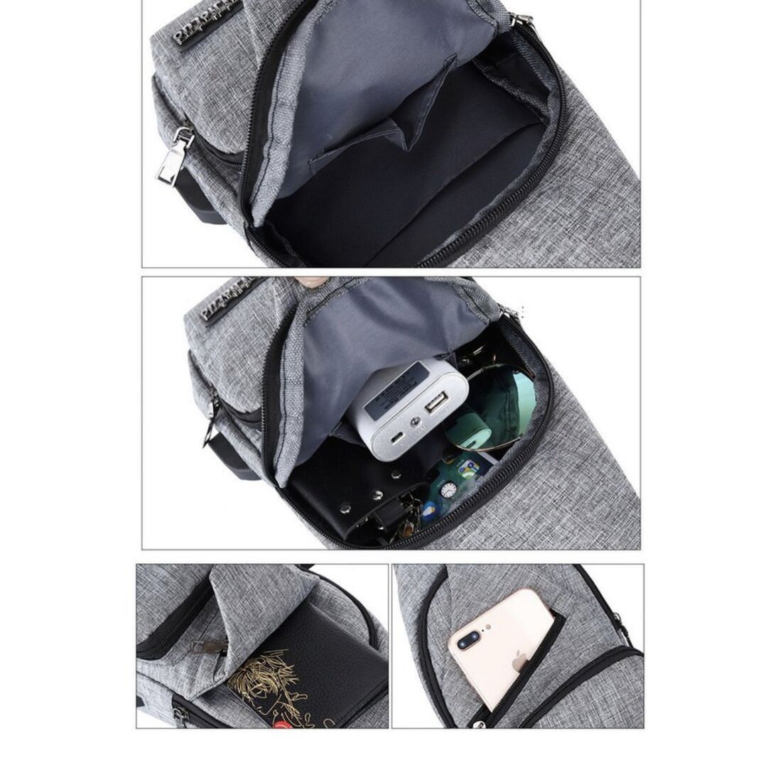 収納部は手帳やお財布、ペットボトルなどの最小限の身の回りのアイテムをすっきりと収納でき、肩の部分にFoseKiftをプリント。