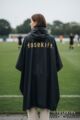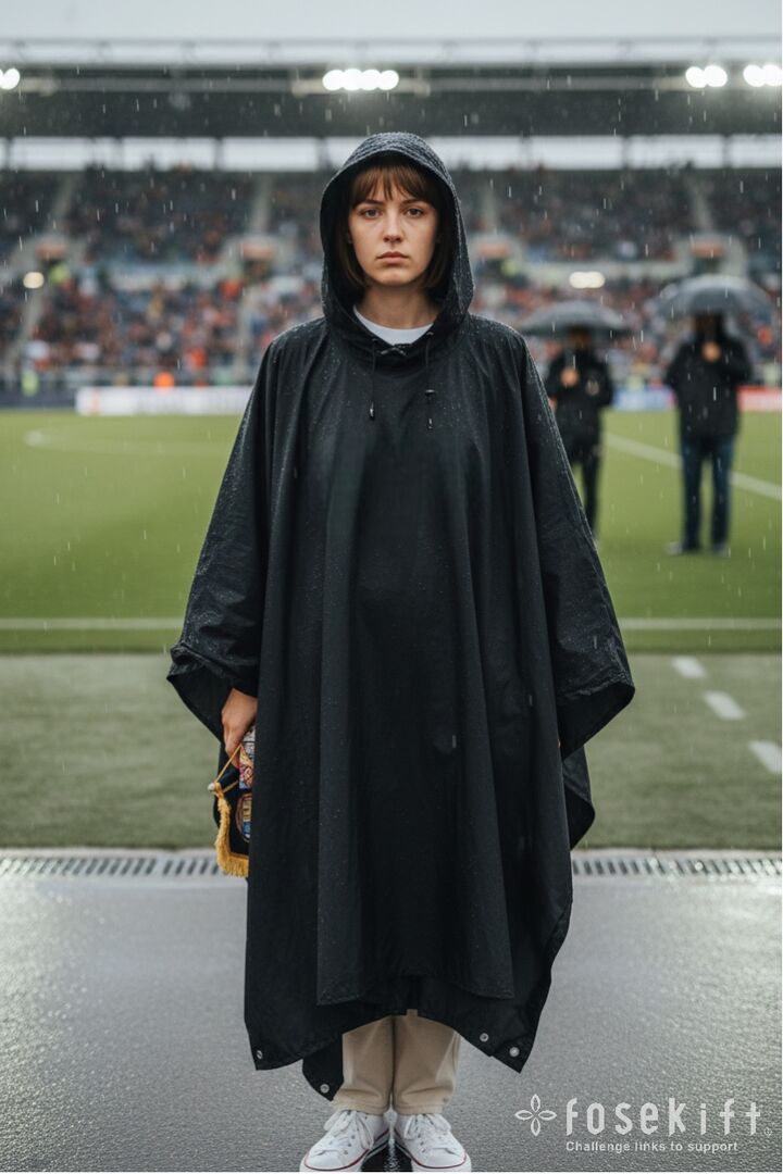 カバンを背負いながら、自転車に乗りながら、調節ひもの付いたつばつきフード、大きな収納ポケット、スナップボタンなど使い勝手がいい。