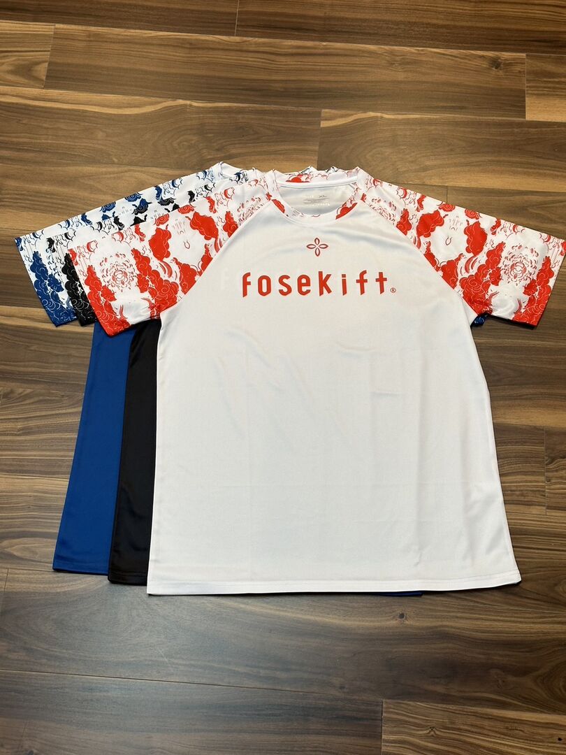 胸には四つ葉とFoseKiftロゴを印刷して、動きやすいラグランTシャツ。
