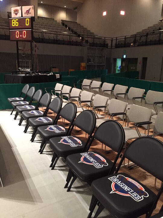 コートサイドにオリジナルLOGO椅子が