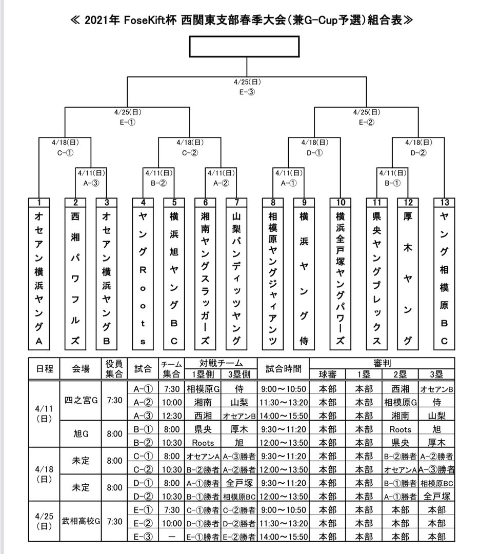 春季大会(兼G-Cup神奈川予選出場権)の組合せ表